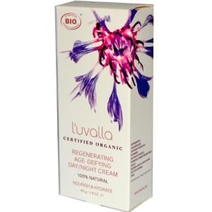 The Organic ingredients in L'uvalla Regenerating Age-Defying Day/Night cream are combined with mineral rich spring water from a serene setting in southern France. This superior skin care provides the benefits of intensive nourishment, improved skin texture and increased hydration, visibly smoothing lines and reducing puffiness.
