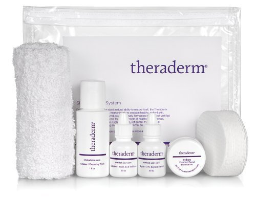 Uncomplicated Skincare. The Theraderm Skin Renewal System Travel Kit is comprised of four products that work harmoniously to produce a healthy, luminous appearance no matter your age. Rooted firmly in bioscience and clinically tested, each product is comprised of ingredients specifically chosen to enhance the skin's natural ability to restore itself. The result is healthy skin that is well-defended against the environment and signs of aging. The Theraderm Skin Renewal System Travel Kit includes: Cleansing-Wash Fruit Acid Exfoliant OPC Reparative Gel Choice of: Enriched Facial Moisturizer or Gentle Facial Moisturizer Gentle Action Application Pads