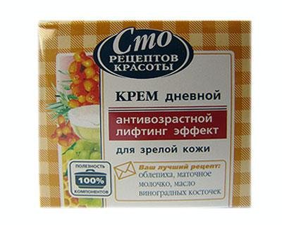 Active ingredient recipe help restore and strengthen skin, slowing down the aging process, increase elasticity, reduce wrinkles. Sea buckthorn - nourishes the skin with energy and vitamins, promotes the process renovation and restoration of skin cells, and thus protects the skin from aging. Application: Use the cream every morning. Apply cream Light massaged on a clean face and neck. The cream is easily absorbed, it can be used as a basis make-up.
