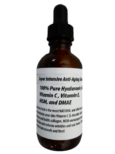 Super Intensive Anti-Aging Serum, 100% Pure Hyaluronic Acid, Vitamin C, Vitamin E, MSM, and DMAE (1oz) description