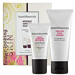 This 30-day cleanser and moisturizer kit for combination skin is the perfect introduction to bareMinerals Skincare. Our Purifying Facial Cleanser removes makeup and impurities while also hydrating and renewing skin. Our Purely Nourishing Moisturizer completes your routine, keeping your skin moisturized and protected so you can have younger-looking skin day after day. Both formulas are powered by our 100% pure RareMinerals ActiveSoil Complex clinically proven to deliver incredible skin-renewing benefits, including faster cell turnover, smaller-looking pores, increased luminosity and antioxidant protection. Collection includes: Purifying Facial Cleanser (60 mL / 2 Fl. Oz.) & Purely Nourishing Moisturizer: Combination Skin (30 mL / 1 Fl. Oz.)