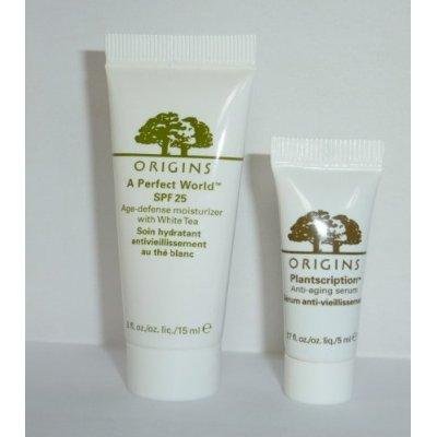 Origins Travel Set /Kit : A Perfect World SPF 25 Age-defense Moisturizer with White Tea 15ml + Plantiscription Anti-aging Eye Treatment 5ml description