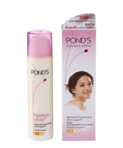 Pond's Flawless White Blemish Prevention UV Cream works harder on darker, stubborn spots and helps prevent new spots from forming. Its superior VAO-B3 technology blocks pigmentation from appearing on the surface and helps in skin renewal while the extra power of Glucoside-C, which is known to deliver long lasting effects,